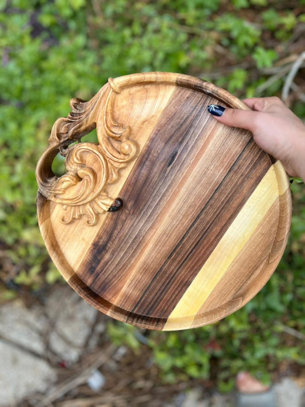 سینی چوبی منبت طرح سنتی سایز30