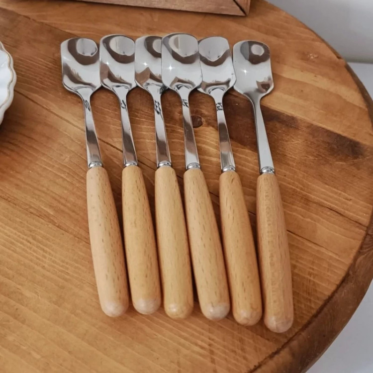 قاشق بستنی خوری قاشق دسر خوری دسته چوبی ۶ عددی